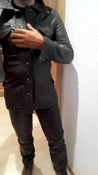 Moje nove crne kožne pantalone zajedno sa crnom majicom iv